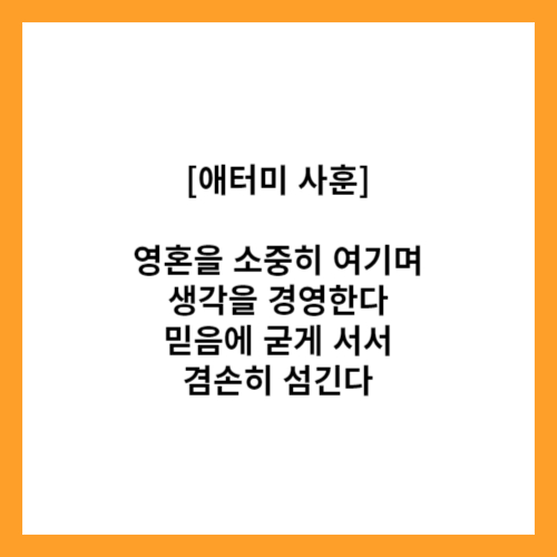 영혼을 소중히 여기며 생각을 경영한다. 믿음에 굳게 서서 겸손히 섬긴다.