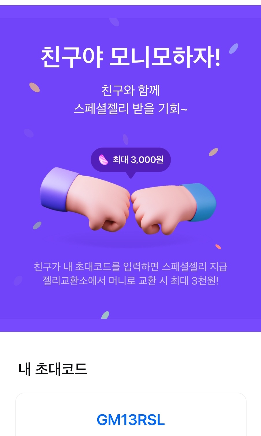 초대코드 입력하시고 스페셜 젤리 받으시기 바랍니다.