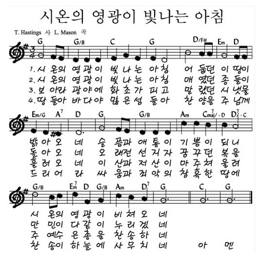 시온의 영광이 빛나는 아침 어둡던 이 땅이 밝아오네