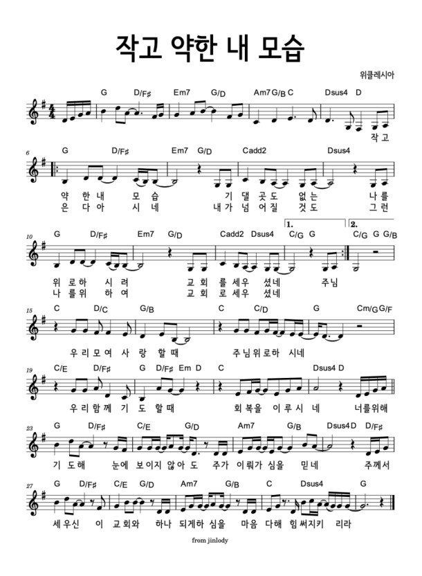 작고 약한 내모습 기댈 곳도 없는 나를 위로하시려 교회를 세우셨네