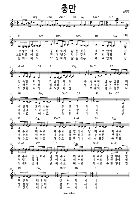 [출처] 손경민 - 충만 악보 F, G, A Key|작성자 from jinlody 진로디