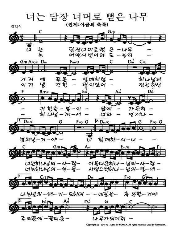 야곱의축복 가사 / 너는 담장너머로 뻗은 / 악보 찬양듣기